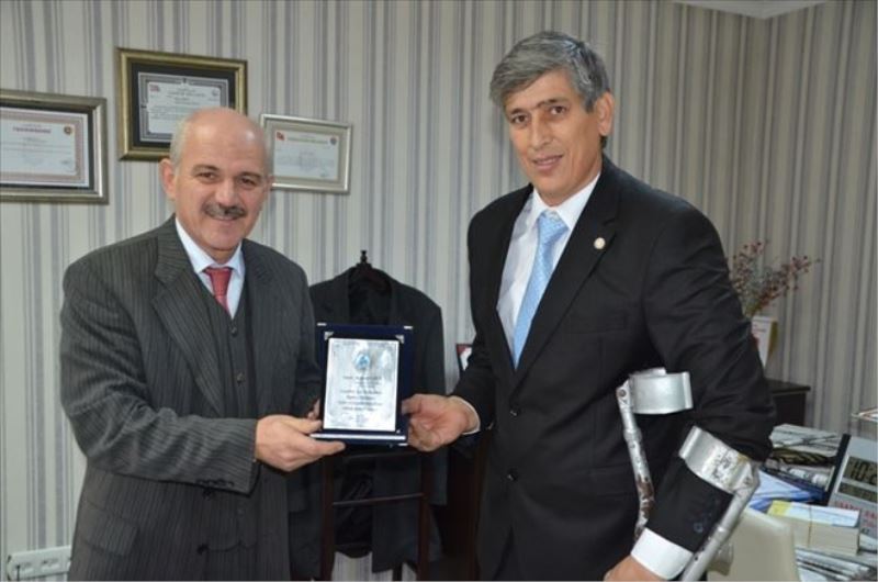 Türkiye Sakatlar Derneği Karabük Şube Başkanı Muhittin Yılmaz, Karabük İl Özel İdaresi Genel Sekreteri Mehmet Uzun´a ve İl Genel Meclisi Başkanı Hasan Yıldırım´a İl Özel İdare kanalı ile yapılan destekler için teşekkür plaketi verdi.