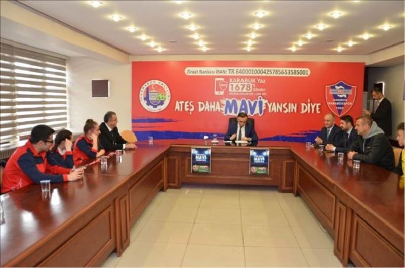 Vali Kemal Çeber, 2-4 Mart 2018 tarihleri arasında Mersin´de düzenlenen Trambolin Cimnastik Türkiye Şampiyonasında 13-14 yaş bayanlarda Türkiye Şampiyonu olan Livanur Yalçın, 17-21 yaş bayanlarda Türkiye üçüncüsü olan Gonca Ural ile 2017-2018 eğitim öğretim yılı okul sporlarında Hentbol İl Birincisi olarak ilimizi Adapazarı´nda yapılan Türkiye Şampiyonasında temsil ederek 16 takım arasına kalarak çapraz eşleşmelere kalma başarısı gösteren Necip Fazıl Kısakürek Mesleki ve Teknik Anadolu Lisesi Hentbol Takımını kabul etti.