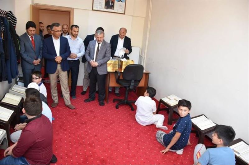 Kur´an Kursunda da incelemelerde bulunan Vali Çeber, İlçe Müftüsü Temur ve Kur´an Kursu idarecisi Mustafa Kumru´dan bilgiler aldı.