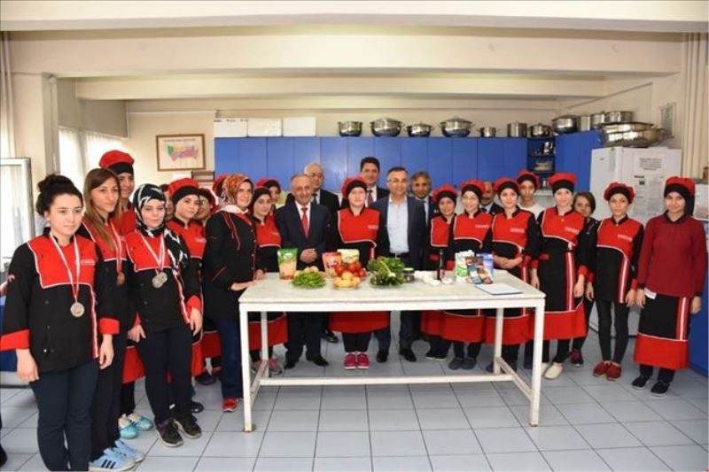 Bu yıl 1. si yapılan Çorum Ulusal Aşçılar ve Pastacılar Şampiyonasında Karabük´ü temsil eden ve En İyi Liseler arasında ikinci olarak gümüş madalya kazanan gıda bölümü öğrencilerini atölyelerinde ziyaret eden Vali Kemal Çeber, başarılarından dolayı öğrencileri kutladı.