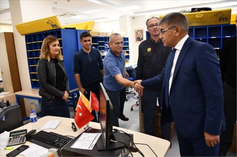 Posta ve Telgraf Teşkilatı (PTT) Karabük Başmüdürü Şükrü Elmas ve şube müdürleri ile birlikte yeni hizmet binasında incelemelerde bulunan Vali Gürel, PTT Müdürlüğü tarafından vatandaşlarımıza sunulan hizmetler hakkında bilgiler alarak görevli personele çalışmalarında başarılar diledi.
