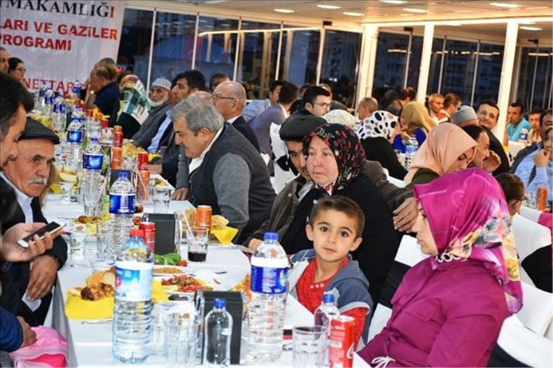 İftar vaktinde İlçe Müftüsü Eyyup Demir´in okuduğu ezanın ardından oruçlar açıldı. Yemeğe katılan protokol üyeleri ayrı ayrı masalarda oturarak şehit yakınlarıyla birlikte iftar açtı. Sıcak bir ortamda yenilen yemeğin ardından İlçe Müftüsü Eyyup Demir tarafından yemek duası yapıldı.