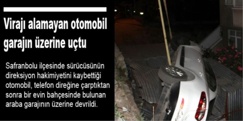 Kaza, akşam saatlerinde Safranbolu Paşapınarı Caddesi`nde meydana geldi. Edinilen bilgiye göre, Mustafa Kazan idaresindeki 34 GD 5228 plakalı otomobil, sürücüsünün virajı alamayarak direksiyon hakimiyetini kaybetmesi sonucu yol kenarında bulunan telefon direğine çarptıktan sonra Kudrettin Ertik`e ait 2 katlı evin bahçesindeki araba garajının üzerine devrildi. Mustafa Kazan, yan yatan otomobilinin içinden yara almadan çıkarken, garajın içinde bulunan Ertik`e ait 34 ZY 1538 plakalı otomobilde de maddi hasar meydana geldi.