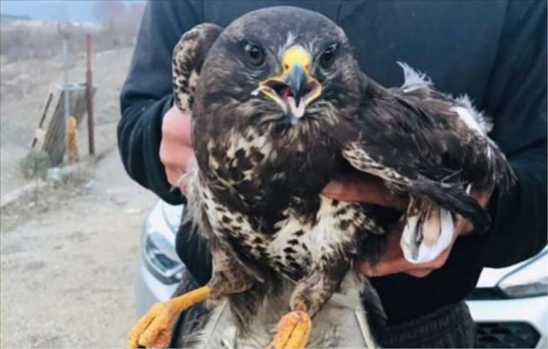 Korumaya alınan yırtıcı kuşun veteriner kliniğinde tedavisinin sürdüğü öğrenilirken, iyileştikten sonra doğaya bırakılacağı belirtildi.