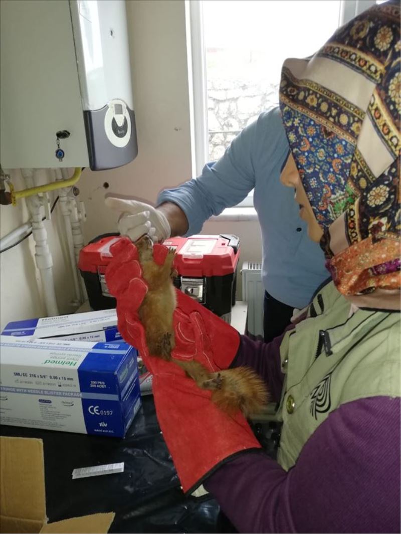Ekipler tarafından teslim alındıktan sonra Safranbolu Belediyesi veteriner hekimine götürülen sincap, tedavi altına alındı. Sincabın yapılan muayenesinde gözüne yabancı cisim battığı tespit edildi.