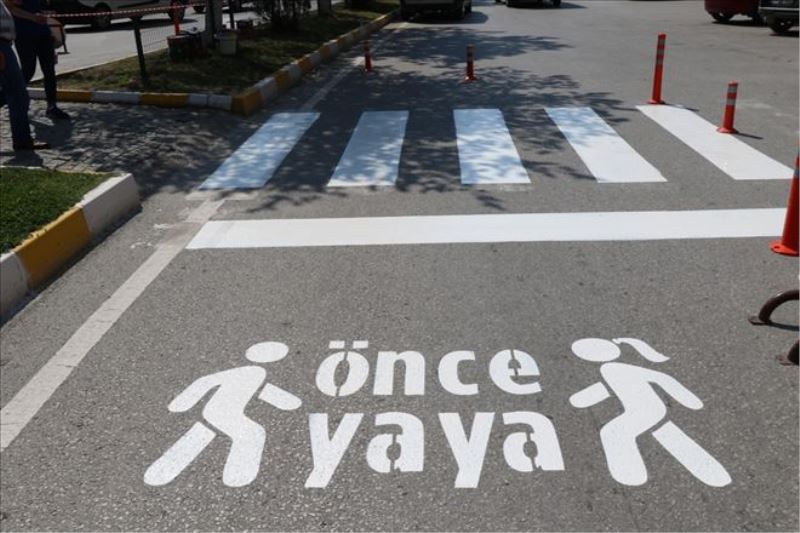 Yaya geçitlerinin önüne Bakanlık projesi olan Önce Yaya yazısı da çiziliyor.