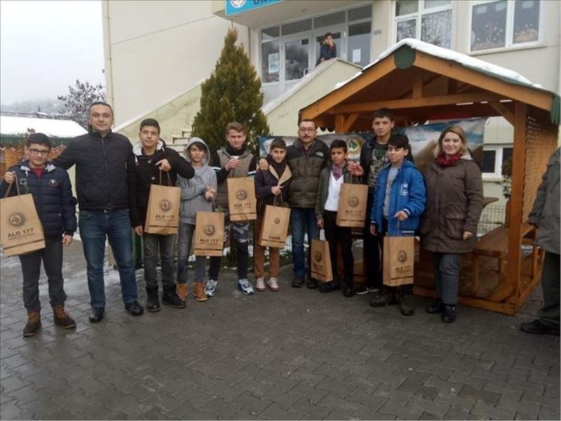 Öğrencilere Yenice Orman İşletme Müdürü Serhat Sugeçti ve personeli tarafından fıstıkçamı, ıhlamur ve kestane fidanlarından toplam 2019 adet fidan dağıtımı gerçekleştirildi.
