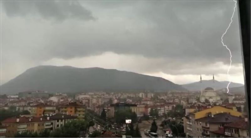 Metrekareye 16 kilogram yağışın düştüğü Safranbolu ilçesinde de yıldırımın düştüğü an bir vatandaş tarafından anbean kaydedildi.