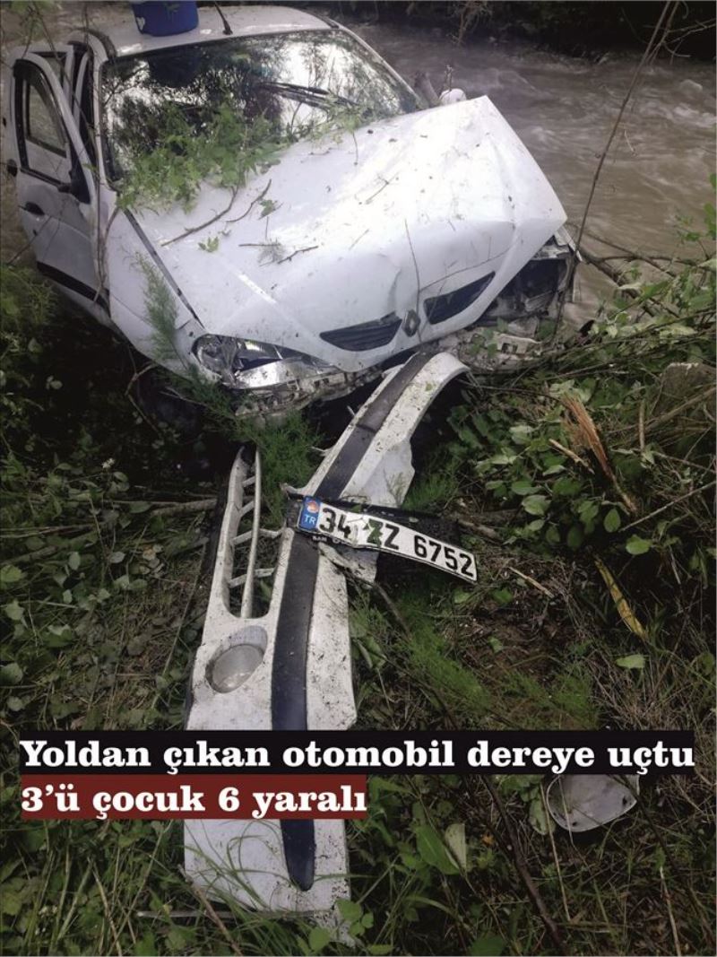 Otomobilin bir kısmının suya gömüldüğü kazada, sürücü Ahmet D. ve yanında bulunan Mehmet Akif (2), Tuana (8), Ecrinsu (7), Yasemin (34) ve Muzaffer D. (66) yaralandı.