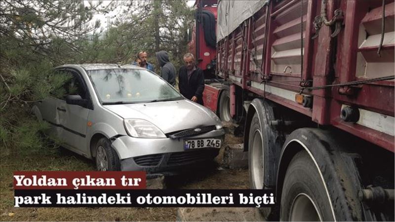 Kaza, Karabük - Ankara karayolu Öğlebeli kavşağında meydana geldi. Karabük istikametine seyir halinde olan Eftal Kurt idaresindeki 60 NP 841 plakalı tır, yağmur yağışı sonrası kayganlaşan yolda sürücüsünün direksiyon hakimiyetini kaybetmesi sonrası orta refüje çıkarak karşı şeride geçti. Tır, park halindeki 78 BB 245 ve 78 BT 753 plakalı otomobillere çarparak yoldan çıkarak su kanalına düşmekten son anda kurtuldu. Kazada şans eseri ölen yada yaralanan olmazken, trafik polisleri kazayla ilgili soruşturma başlattı.