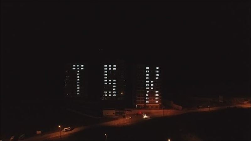 Mehmetçiğe Türkiye´nin dört bir yanından destek gelirken, bir destek de kız öğrenci yurdundan geldi. Karabük Üniversitesi kampüsü içinde Asiye Hatun Kız KYK yurdunda kalan öğrenciler, Suriye´nin İdlib kentinde rejim unsurları tarafından düzenlenen hava saldırısında şehit olan askerleri anmak ve Mehmetçiğe destek olmak amacıyla odalarının ışıklarıyla koordineli bir şekilde ‘TSK´ yazısı oluşturdu. Kent genelinde görünen ve drone ile havadan görüntülenen TSK koreografisi vatandaşlar tarafından takdirle karşılandı.