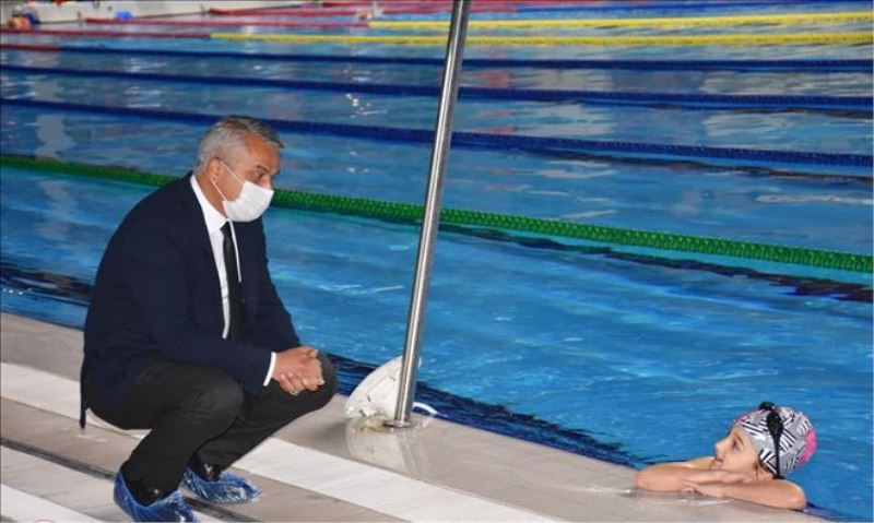Gençlik ve Spor İl Müdürlüğü´ne bağlı Kapalı Yüzme Havuzu´nda; maske, mesafe ve hijyen tedbirlerine uyarak çocuklar modern havuzda deneyimli antrenörler eşliğinde çalışmalarına devam ediyor.