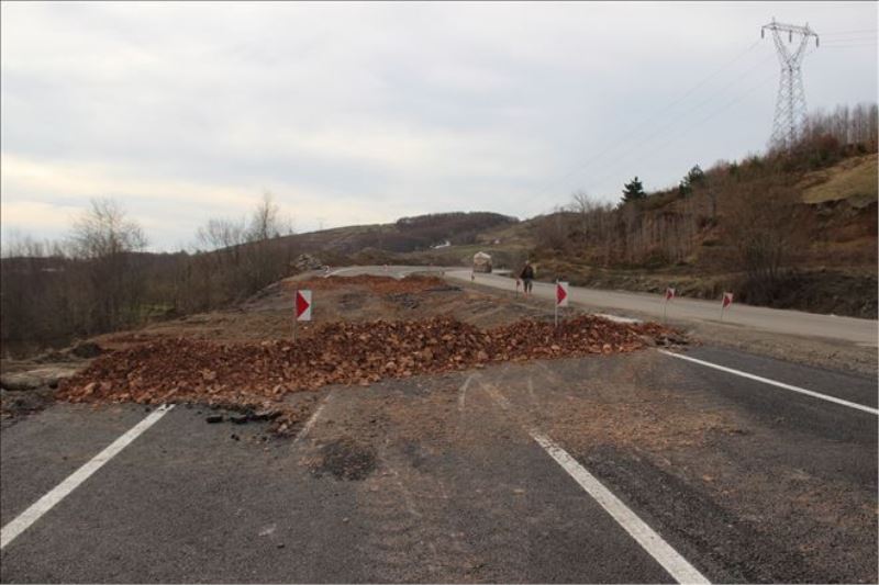 Zonguldak´ın İstanbul´a bağlantısını sağlayan karayolunun Bayat köyü mevkisinde yaşanan heyelan sonrası karayolları ekipleri bölgeye gelerek kazı çalışması yaptı. Çöken yolun hafriyatını alan karayolları ekipleri yolun her iki tarafına da içerisine araç düşmemesi için dolgu malzemesi döktü.