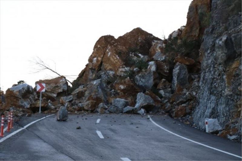 Tonlarca ağırlığındaki kaya parçalarının bölgeden temizlendikten sonra yolun yeniden ulaşıma açılması bekleniyor.