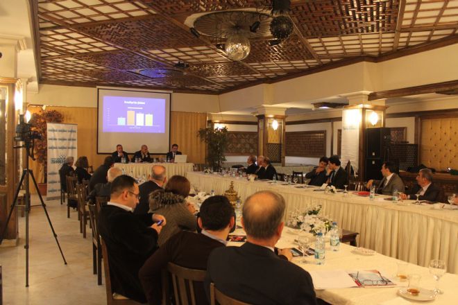 Prof. Dr. Hasan KÖNİ, küresel jeopolitiğin temel merkezleri arasındaki dengelerde beklenen gelişmelerden bahsetti. ABD Rusya Çin arasındaki muhtemel gelişmeleri anlattı. Ardından Banka E. Genel Müdürü Ersin Dedekoca ‘2015’de Küreselleşme ve Dünya Ekonomisi’ başlığı altında çalışmalarını sundu.