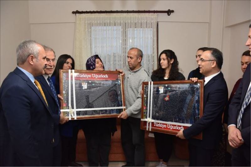 Ziyarette Bakan Sarıeroğlu, şehit annesi Ülker ve baba İsmail Akpınar´a oğullarının cenaze töreninde meydanı dolduran 10 binlerin oluşturduğu Türkiye siluetinin bulunduğu ve üzerinde ‘Türkiye Uğurladı´ yazan resim hediye etti.