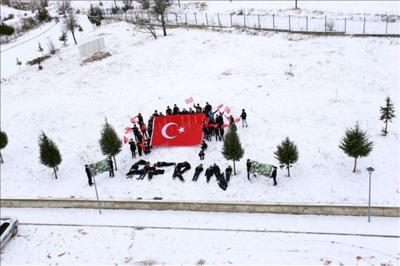 Ovacık Sporcu Kamp Eğitim Merkezi´nde kamp yapan Yunus Emre Gençlik Spor ve İzcilik Kulübü üyeleri, Türk Silahlı Kuvvetleri´nin Afrin´de düzenlediği ‘Zeytin Dalı Harekatı´na destek amacıyla kar üzerinde bedenleriyle “Afrin” yazdı.