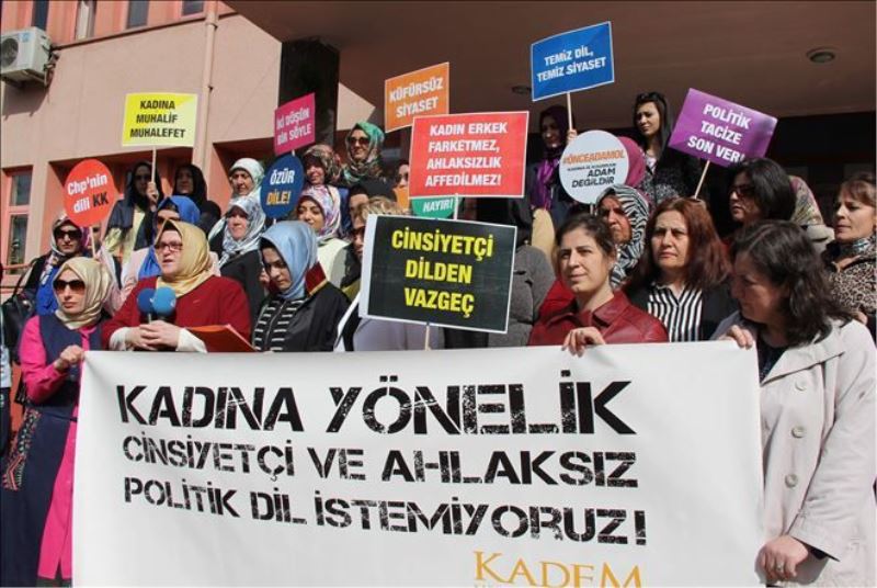 KADEM Karabük Temsilciliği adına basın açıklamasını okuyan Avukat Emine Sarı, 'Cinsiyeti sebebiyle bir kadın siyasetçiye yapılan bu çirkin ithamların faili ne yazık ki bir siyasi partinin başkanıdır. Hala özür dilemeyen ve sözlerinin arkasında durduğunu söyleyen Kılıçdaroğlu´nun bu çirkin sözleri bir nefret suçudur, hiçbir gerekçeyle meşru gösterilemez. Bugünün Türkiye´sinde siyaset, bu tür hakaret ve nefret kıskacından kurtarılmalıdır. Kılıçdaroğlu´nun ´tecavüz karşıtı´ bir konuşma yaptığı sırada bir kadın bakana atfen kullandığı hakaret dolu bu sözler, dünyanın hiçbir yerinde herhangi bir ahlaki kıstasa sığmamaktadır. Kılıçdaroğlu´nun diğer erkek siyasetçilere herhangi bir cinsiyetçi ve ahlaksız ithamda bulunmayıp, kadın bakandan bahsederken doğrudan cinselliği çağrıştıran ahlaksız bir ithama yönelmesi, siyasi tarihimizde benzerine rastlanmamış bir seviyesizliktir. Kadını kadın kimliğinden dolayı cinsiyetçi bir dille aşağılayan, ahlaka sığmayan bu dil kabul edilemez. Kılıçdaroğlu´nun bir kadın siyasetçiye yönelik sarf ettiği cinsiyetçi ve ahlaksız sözlerine karşı tepkimizi duyurmak için, bu cinsiyetçi siyaset diline ´dur´ demek için, toplumun bu şiddet diline ´artık yeter´ dediğini göstermek için bugün burada Kılıçdaroğlu hakkında suç duyurusunda bulunduk' ifadelerini kaydetti.