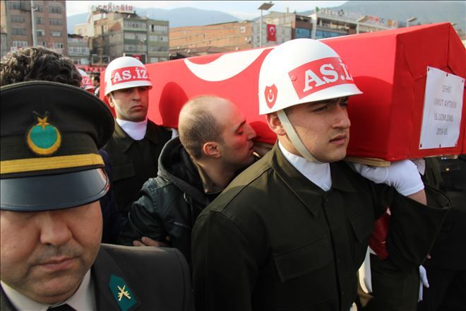 Tabutun başına gelen şehitin annesi Zehra Aytekin, “Oğlumun kokusu geliyor. Ne güzeldi gözlerin. Niye bakıyorsun oğlum öyle niye? Oğlumun gözleri kızarmış” diyerek oğlunun tabuttaki fotoğrafını öptü.