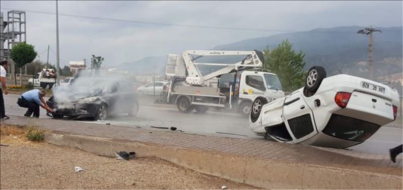 İkinci kazada, Karabük´ten Safranbolu istikametine giden Muammer Yardibi (52) yönetimindeki 06 GC 828 plakalı otomobil, Emniyet Müdürlüğü önünde henüz belirlenemeyen bir nedenle önce refüjdeki elektrik direğine ve ağaca, ardından da karşı yönden gelen Levent Boyraz´ın (28) kullandığı 44 FL 918 plakalı otomobile çarparak devrildi. Kazada devrilen otomobilin sürücü Yardibi, çevredekilerin yardımıyla otomobilden çıkartıldı. Yaralı sürücü, olay yerine çağrılan sağlık ekipleri tarafından Karabük Eğitim ve Araştırma Hastanesi´ne kaldırıldı.