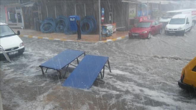 Eskipazar´da etkili olan 15 dakika süren dolu ve yağmur sonrası caddeler adeta göle döndü. Bir anda bastıran yağmur ve dolu sonrası vatandaşlar hazırlıksız yakalanırken, araçlar ise trafikte ilerlemekte güçlük çekti. Yağan yağmur dolayısıyla bazı iş yerlerini giren suları ise vatandaşlar kendi çabaları ile boşalttı.