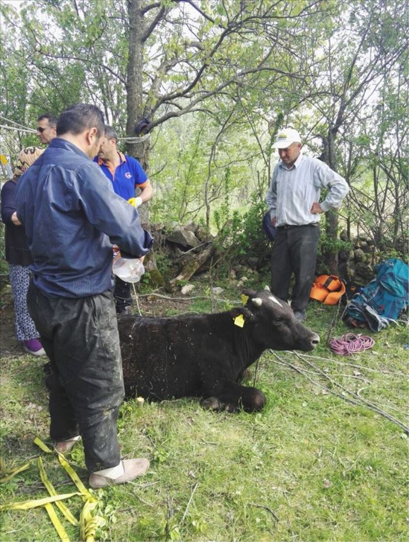Edinilen bilgiye göre, Taşköprü ilçesine bağlı Samanlıören Mahallesi´nde sahibi tarafından otlanması için boş bir araziye bırakılan inek, üzeri kapatılmayan 15 metre derinlikteki su kuyusuna düştü. Kuyudan gelen sesler üzerine olayı fark eden çevredekiler, jandarma ekiplerinden yardım istedi. Bunun üzerine jandarma ekipleri, Kastamonu İl Afet ve Acil Durum Müdürlüğü ekiplerine bilgi vererek yardım istedi. Bölgeye gelen 3 kişilik AFAD ekibi, ineği kuyudan çıkarmak için çalışmalara başladı. Özel ekipmanlarla kuyuya inen AFAD görevlisi, ineğin arka ayaklarına halat bağladı. Ardından da kuyudaki inek vinç yardımıyla çekilerek kurtarıldı. Yaralanmadan kurtarılan inek, veteriner hekim tarafından muayene edildi.