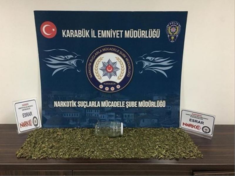 Edinilen bilgiye göre, İl Emniyet Müdürlüğü Narkotik Suçlarla Mücadele Şube Müdürlüğü ekipleri yaptıkları çalışmalar kapsamında C.C.(33) ve İ.A. (33) isimli şüphelilerin Karabük´e uyuşturucu madde getireceği ihbarını aldı. Ekiplerce takip edilen zanlılar düzenlenen operasyonla Bağ Essan Sanayi Sitesi mevkisinde yakalanarak gözaltına alındı. Şüphelilere ait otomobilde yapılan aramada 555 gram esrar da ele geçirildi.