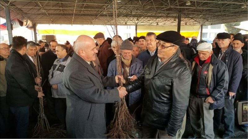 Konuşmaların ardından emeklilere fidan dağıttı.