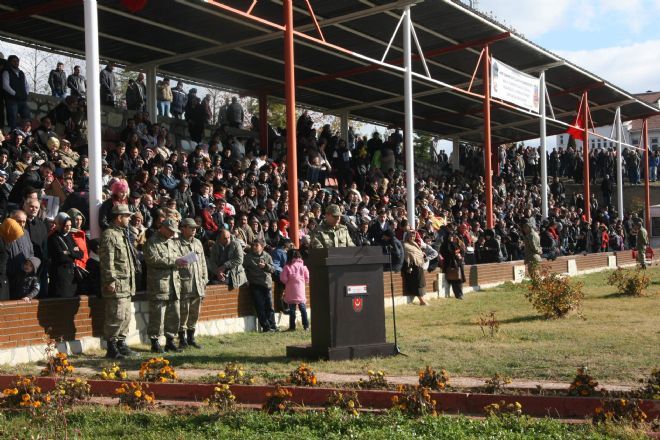 Safranbolu 125. Jandarma Eğitim Alay Komutanlığı’nda 1993/4 tertip acemi erler için yemin töreni düzenlendi. Törene; Karabük Vali Yardımcısı Erkan Çapar, Zonguldak 3. Jandarma Er Eğitim Tugay ve Garnizon Komutanı Tuğgeneral Necdet Köse, Karabük Garnizon Komutanı Albay Samit Tokmak, Safranbolu Kaymakamı Murat Bulacak, 125. Jandarma Er Eğitim Alay Komutanı Albay Cihan Ulukaya, Safranbolu Belediye Başkan Yardımcısı Mustafa Dayıoğlu, Karabük İl Emniyet Müdürü Oktay Keskin, Polis Meslek Yüksekokulu Müdürü Orhan Karademir, Safranbolu İlçe Emniyet Müdür Erol Beşe, sivil toplum örgütü temsilcileri ve vatandaşlar katıldı. Tören 125. Jandarma Eğitim Alay Komutanı Jandarma Albay Cihan Ulukaya’nın vatandaşları selamlamasının ardından bir dakikalık saygı duruşu ve İstiklal Marşı’nın okunmasıyla başladı. Alay sancağının yerini almasının ardından acemi erler komutanları eşliğinde and içti. Acemi askerlerin and içmesi aileleri tarafından uzun süre ayakta alkışlandı. Birliğe ilk katılan acemi ere ödülünü Vali Yardımcısı Erkan Çapar verirken, eğitimlerde başarılı erlere başarı belgeleri ve hediyeleri ise, protokol üyeleri tarafından verildi.