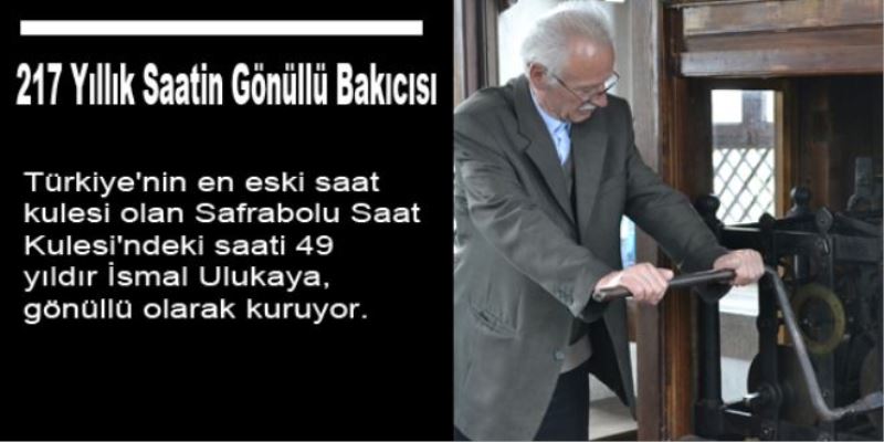 Türkiye`nin en eski saat kulesi olan Safrabolu Saat Kulesi`ndeki saati 49 yıldır İsmal Ulukaya, gönüllü olarak kuruyor.