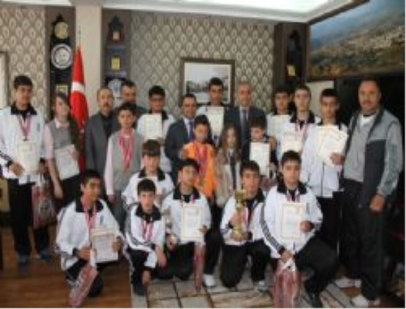 Ünsal Tülbentçi İlköğretim Okulu Müdürü Niyazi Ortakçı ise başkan Aksoy’u bilgilendirdiği konuşmasında “ABD. Nabrasca Üniversitesi Sonbaharda yaptığı Matematik yarışmasında Okulumuzdan 3 öğrencimiz 96 ülkeden 133000 öğrenci arasından %1.’lik kısmına girerek 3 Madalya aldılar. Ömer Köroğlu Altın; Alper Bozkurt Gümüş; Batuhan Çelik Bronz, 8. Ulusal matematik yarışması Ankara’da Samanyolu kolejinde yapıldı. Türkiye geneli ilköğretim okullarından 7. ve 8. sınıflarına halen devam eden öğrencilerin katıldığı yarışmada her okul en çok 4 öğrenci ile temsil edildi. Ekipler bir gün önce Ankara’da misafir edildiler. Yarışmaya 68 ilden 1.253 okul, 2 bin 743 öğrenci katıldı. Rafet Çelen yönetiminde Ünsal Tülbentçi İlköğretim Okulumuz yarışmaya 3 öğrencimizle katıldı. Alper BOZKURT, Batuhan ÇELİK, Samet SOYDAN öğrencilerimizden Alper BOZKURT, Türkiye’nin özel kolejlerinin en iyi öğrencilerinin yarıştığı rakiplerinin arasından sıyrılarak Türkiye 2. olarak Gümüş madalya kazandı. Olimpiyat Matematik takımımız 1 hafta öncede İstanbul merkezli Türkiye geneli ve çevrimiçi Uluslararası 12. Harezmi Matematik yarışmasında yine Alper BOZKURT ile Bronz madalya almıştık. İki hafta önce Safran kolejinin Karabük il ve ilçeleri genelinde yaptığı SABİO sayısal bilim olimpiyatında (5-6-7. sınıflar arası ) Matematik olimpiyat takımımızdan 7. sınıflarda Adnan ÇELEN Altın madalya; yine 7. sınıflarda Berna ERKAN gümüş madalya elde ederken 5. sınıflarda Selma AŞKINDA Altın madalya aynı sınıftan Melih PORTAKAL gümüş madalya elde etti. Okulumuz Basketbol takımı Yaşar Başaran yönetiminde İl birincisi olarak şampiyon oldu ve 24 Nisan’da Kastamonu’daki Bölge Şampiyonasına gidecek. Satranç takımımız İbrahim İncekara yönetiminde 4. Sınıftan Ömer Emre Çelen 6 kez Karabük satranç il birinciliğinde derece yaptı. (4 Altın-1 gümüş- 1 Bronz) 7. Sınıflardan Agabeyi Adnan Kotku Çelen de ilde 5 kez derece yaptı. (2 Altın-2 gümüş-1 Bronz) ile, Matematik olimpiyat takımımız Rafet Çelen yönetiminde 14 nisan da 7 öğrencisi ile Tübitak olimpiyatlarına 20 Nisan’da İzmir’de Mafetya (Matematik Fen yarışmalarına girecek.)İnşallah bu yarışmalardan da madalya alırsak bu sezon girdiğimiz tüm yarışmalardan madalya almış olacağız. Bu tecrübelerimizi İlimizde de kullanarak Ünsal Tülbentçi beyin katkılarıyla Karabük genelinde bu yıl Matematik olimpiyatı düzenlenmek istiyoruz. Bu organizasyonla matematik sevgisine katkıda bulunmak ve bu alanda yetenekli gençlerimizi ortaya çıkarmak istiyoruz” dedi.