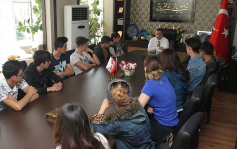 Makam odasında gerçekleşen ziyarette Aksoy öğrencilere ' Çok çalışın, her işin başında azimli olmak geliyor' dedi.