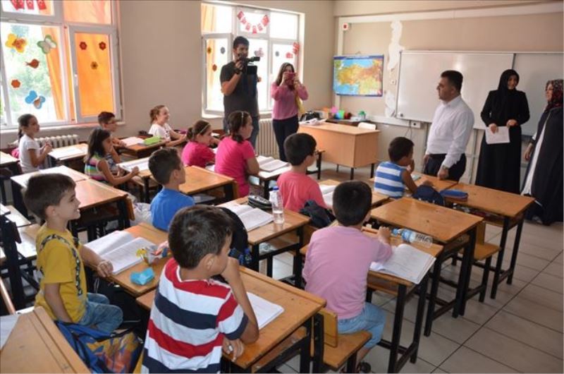 Aksoy tüm sınıfları ziyaret ederken çocuklarla uzun süre sohbet etti.