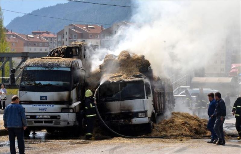 Yangın, Cumapazarı mevkisinde meydana geldi. Şahin Başkurt, saman yüklü 78 AN 155 plakalı kamyonunu yol kenarında Ercan Demirtaş´a ait 78 AG 342 plakalı vincin yanına park etti. İki sürücü de cuma namazı için camiye gitti. Bir süre sonra bilinmeyen bir nedenle samanlar tutuştu. Kısa sürede kamyonu saran alevler bitişiğindeki vince de sıçradı. Haber verilmesiyle olay yerine gelen itfaiye ekipleri alevlere müdahale ederek yangını kontrol altına almayı başardı. Yanan araçların yakınındaki diğer araçlar ise sürücüleri tarafından uzaklaştırıldı.