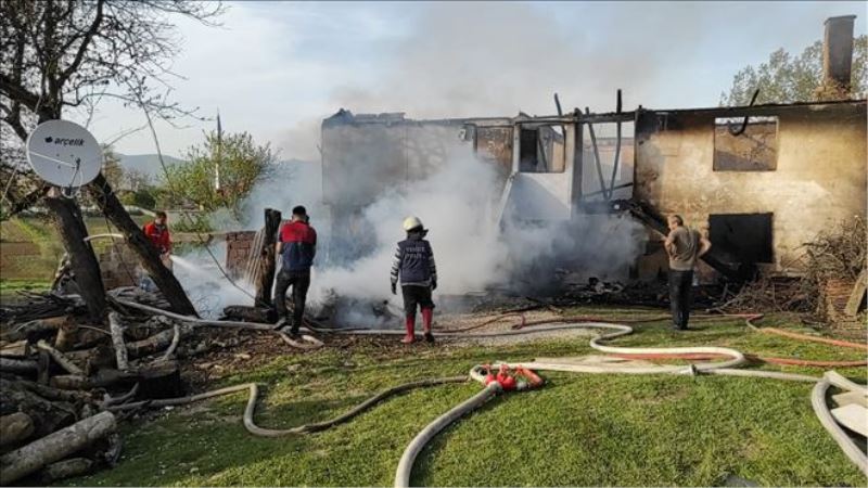Olayla ilgili inceleme başlatılırken, iki katlı ahşap ev ile samanlık yangında kullanılmaz hale geldi.