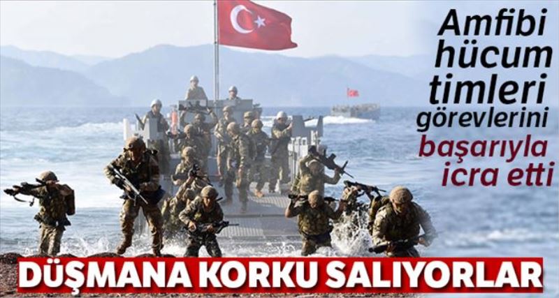 Milli Savunma Bakanlığı´nın resmi Twitter hesabından yapılan açıklamada, her türlü zorlu göreve hazır olan amfibi hücum timlerinin, Karadeniz, Ege ve Doğu Akdeniz´de devam eden DENİZKURDU-2019 Tatbikatı´nda da hücum eğitimlerini ve denizden karaya çıkartmaları başarılı şekilde icra ettiği kaydedildi.