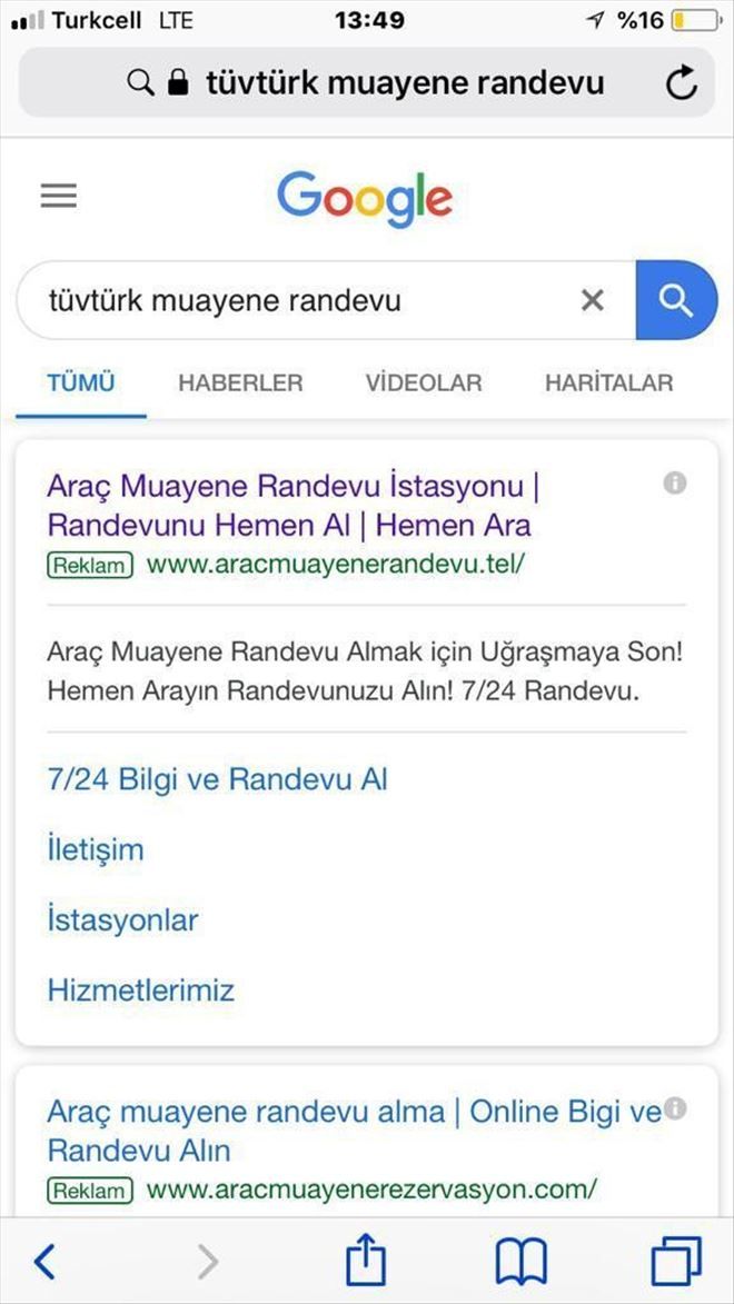 Edinilen bilgiye göre, Avusturya´nın Viyana şehrinden ülkeye dönüş yapan Şeref Atasever, burada oto yıkama dükkanı açtı. Aracının muayenesinin bitmesi üzerine muayene için randevu almak isteyen Atasever, internete “TÜVTÜRK araç muayenesi randevusu” yazarak karşısına çıkan ilk sayfayı tıkladı. Araç muayene randevusu için verilen 0800´lü numarayı arayan Atasever, randevu talebi oluşturmak için 6-7 dakika operatörle konuştu. Randevusunu tamamladıktan sonra telefonu kapatan Atasever, telefonuna gelen mesajla şok oldu. Operatör servisinden gelen mesajda faturasının 251.77 TL olduğunu gören ve faturasının 100 lira olduğunu bilen Atasever, randevu kaydı oluşturmak için konuşurken yaklaşık 150 lira dolandırıldığını anladı.