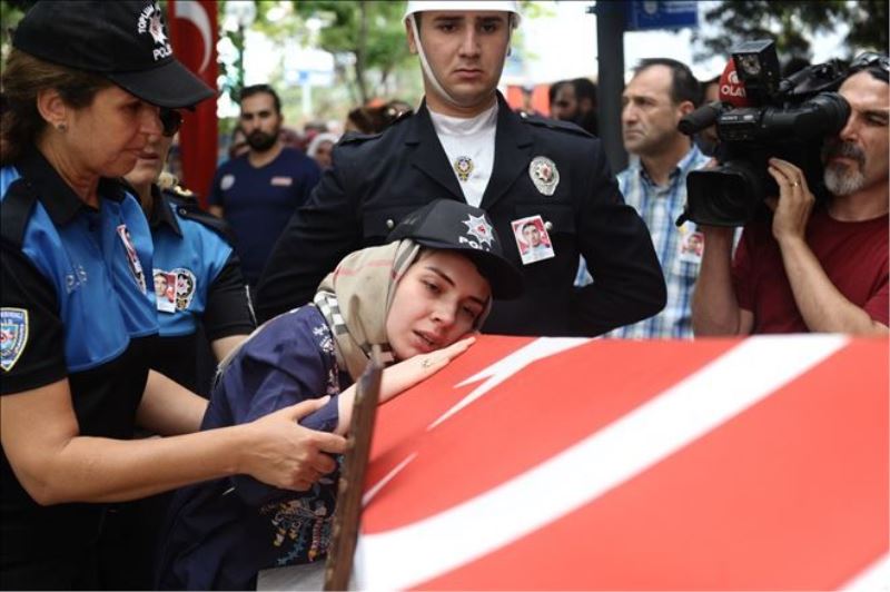 İstanbul´da gözaltına alınan DEAŞ´lı terörist tarafından bıçaklanarak şehit olan polis memuru Sinan Acar Bursa´da son yolculuğuna uğurlandı. Genç polisin bir haftalık nişanlısı Nida Fedayi, Acar´ın Türk bayrağına sarılı tabutunu omzunda taşıyıp asker selamıyla uğurladı.