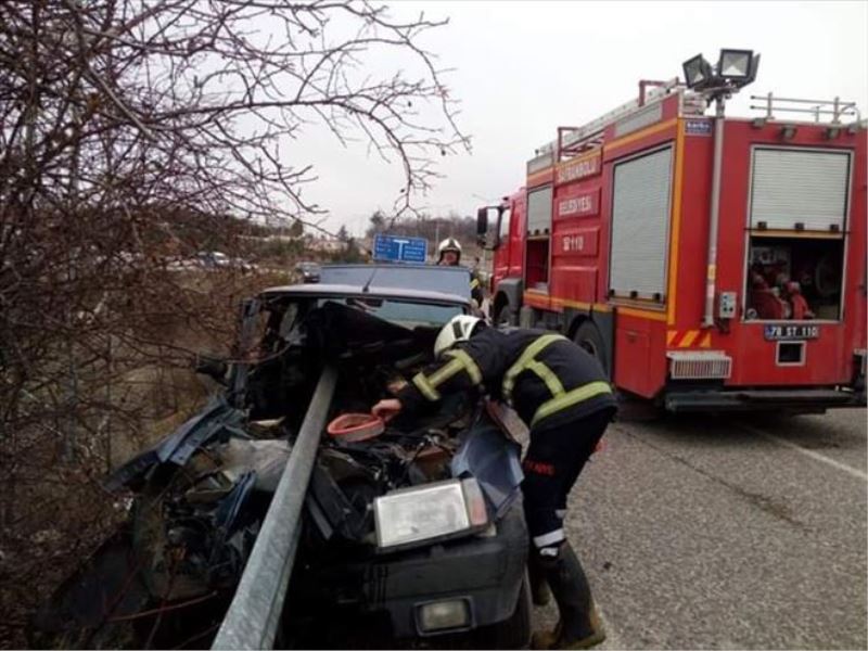 Safranbolu´da meydana gelen trafik kazasında, bariyerlere saplanan otomobilin sürücüsü kazayı hafif yaralı olarak atlattı.