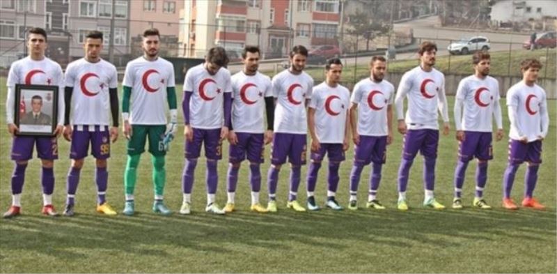 Futbolculardan Yiğit Can Demir ise, beraber büyüdüğü, çok sevdiği arkadaşının resmini elinden bir an olsun bırakmadı. Belediye Sporlu futbolcular, karşılaşma da attıkları her golün ardından Bayrağımıza koşarak asker selamı verdiler.