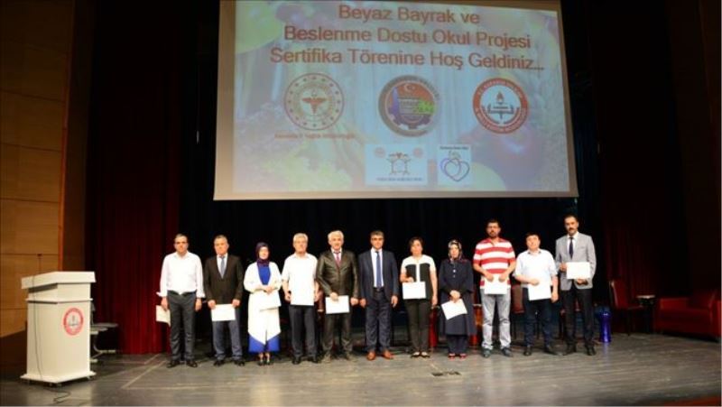 Protokol konuşmalarının ardından “Beyaz Bayrak” ve “Beslenme Dostu Okul” sertifikası almaya hak kazanan okulların sertifikaları Vali Fuat Gürel ve protokol üyeleri tarafından okul müdürlerine teslim edildi.