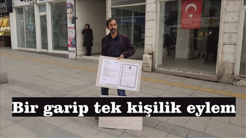 Karton üzerine yazdığı ‘Kapıcı dairesi ve depo sığın müteahhide imza vermediğim için 18 dairede elektrik var, 2 dairede elektrik vermiyor. İskan olmadığı için abone olamıyorum. 8 aydır elektriğim yok. Maliyeye şikayet ettim´ yazılı pankart ile sözleşme ve tapu belgelerini sergileyen Aksoy´u vatandaşlar meraklı bakışlarla izledi.