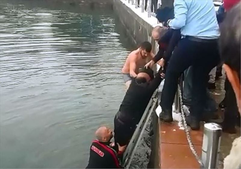Geçtiğimiz pazartesi günü Zonguldak da denize atlayarak intihara kalkışan İbrahim Ö.´yü soğuk suya aldırmadan polis memuru ile birlikte kurtaran Yalçın Durmuş (26) bugün de balıkçı barınaklarında teknesinden düşerek boğulma tehlikesi geçiren bir kişiyi daha kurtardı. Edinilen bilgiye göre, teknesinde bakım yapmaya çalışan ve yüzme bilmediği öğrenilen Ahmet Keskin dengesini kaybedip denize düştü. Çırpınmaya başlayan ve yardım isteyen Keskin´i gören Yalçın Durmuş, hiç düşünmeden denize atlayıp boğulma tehlikesi geçiren Ahmet Keskin´i kurtararak tekneye çıkarttı. Sağlık durumu iyi olan Keskin´i kıyıya çıkartan Yalçın Durmuş´a vatandaşlar üşümemesi için elbise verdi.
