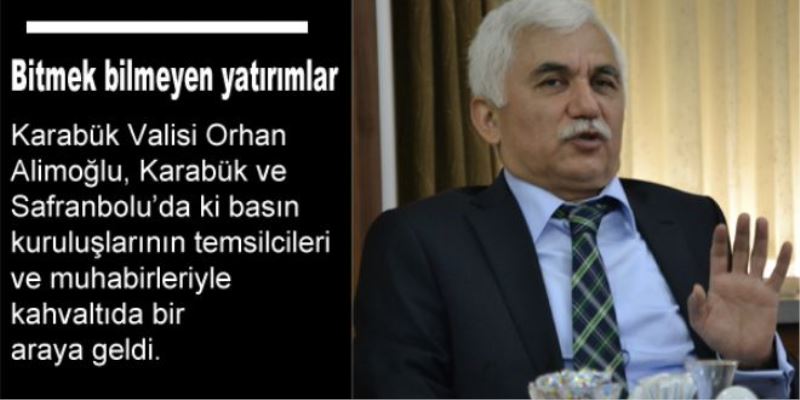 Karabük Öğretmenevi’nde düzenlenen basın toplantısına; Vali Orhan Alimoğlu’nun yanı sıra, Garnizon Komutanı Jandarma Albay Samit Tokmak, İl Emniyet Müdürü Dr. Serhat Tezsever, İl Özel İdare Genel Sekreteri Mehmet Uzun, İl Milli Eğitim Müdürü İsmail Gürpınar, İl Sağlık Müdürü Dr. Ahmet Sarı, Gençlik ve Spor İl Müdürü Abdulkadir Çetin, Gıda tarım ve hayvancılık İl Müdürü Cemalettin Çataklı katıldı. Kahvaltı öncesi basın mensuplarına davetlerine katıldıkları için teşekkür eden Vali Orhan Alimoğlu, kahvaltı sonrasında basın mensupları ile tek tek tanıştı. Sohbet ortamında geçen tanışma toplantısında Vali Orhan Alimoğlu, her zaman Karabük’ün bir adım daha ileri girmesi için el birliği içersinde çalışacaklarını söyledi.