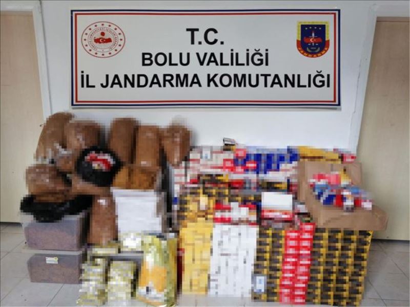 Edinilen bilgiye göre, İl Jandarma Komutanlığı ekipleri, Mudurnu´nun Taşkeski beldesinde 2 iş yerinde kaçak tütün ve tütün malzemeleri satıldığı ihbarı üzerine operasyon başlattı. Ekiplerin eş zamanlı olarak yaptıkları operasyonda piyasa değeri toplam 120 bin lira olan, 58 bin 800 adet boş makaron, 56 bin 120 adet satışa hazır bandrolsüz dolu makaron, 100 bin 784 gram kıyılmış tütün, 4 bin 288 gram pipo tütünü, 2 bin 550 adat boş sigara paketi, 61 adet sigara doldurma aparatı, 19 adet niteliğine uygun olmayan TAPDK bandrolü, 7 bin 100 gram bandrollü nargile tütünü, 280 adet bandrollü puro, 150 adet sigara sarma kağıdı, 1 adet hassas tartı ele geçirildi. Olayla ilgili 2 kişi gözaltına alınarak, ifadeleri alınmak üzere jandarma komutanlığına götürüldü.