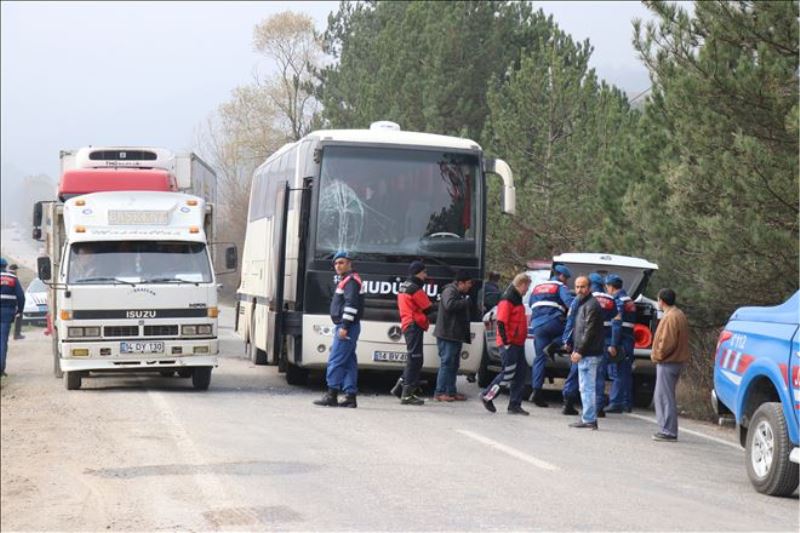 Olay, saat 11.00 sıralarında Bolu- Mudurnu Yolu Piroğlu Mevkii´nde meydana geldi. Edinilen bilgiye göre Mudurnu Dumlupınar İlköğretim okulunda öğrenim gören 117 öğrenciyi, Bolu il merkezinde bulunan bir alışveriş merkezindeki bilim fuarına götüren 3 otobüsten, Ayhan Ö.´nün kullandığı 14 LC 308 plakalı otobüs önüne çıkan iş makinesi nedeniyle ani fren yaptı. Ayhan Ö.´nün fren yapmasıyla beraber, arkasında bulunan Remzi Ç. idaresindeki 14 BV 403 plakalı otobüs Ö.´nün kullandığı otobüse hızla çarptı. Kaza yapan otobüslerin hemen arkasında bulunan Metin Ş. yönetimindeki 14 LF 307 plakalı otobüs de diğer araçlara çarparak durabildi. Kazada, 3 otobüste bulunan toplam 117 öğrenciden 11´i haff şekilde yaralandı.