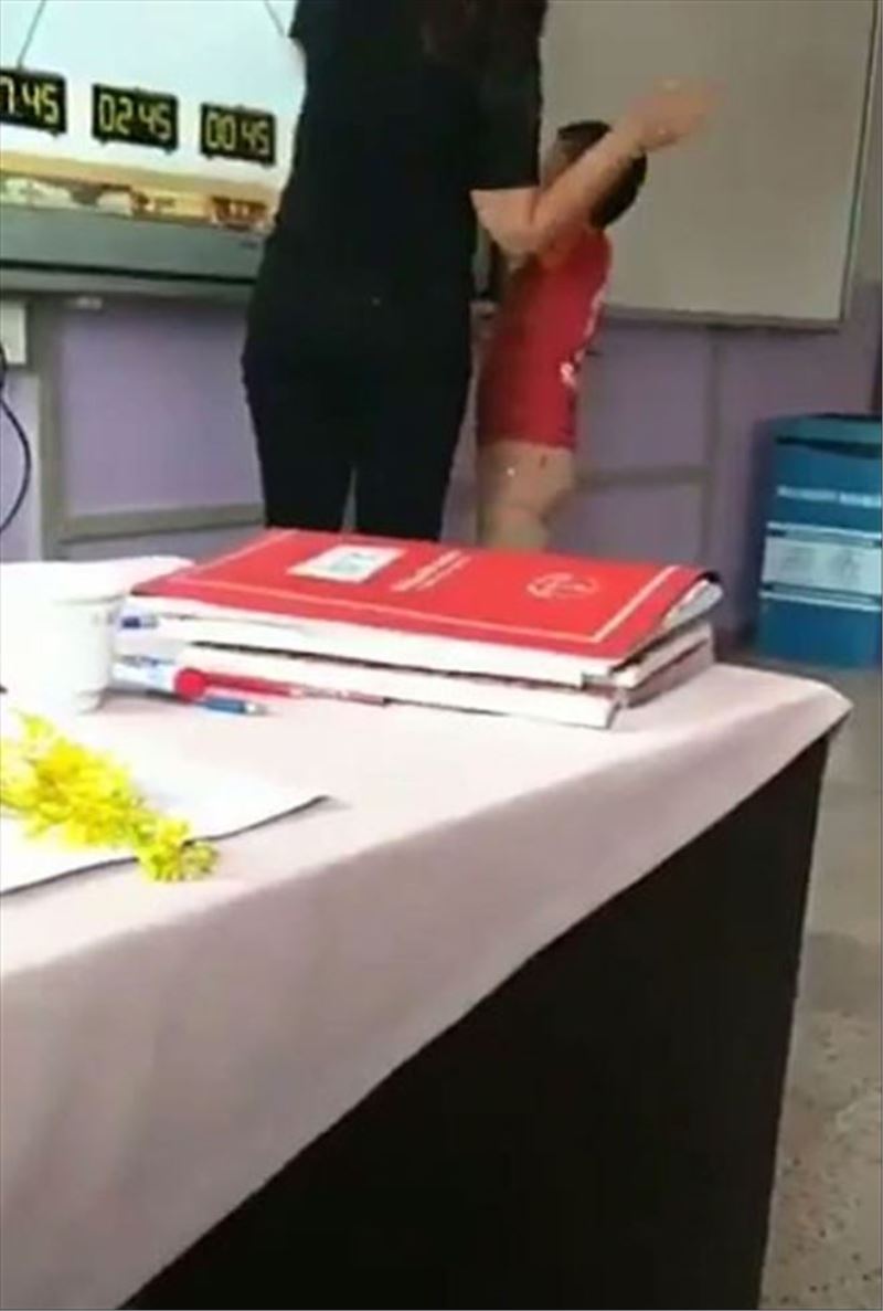 Yaşanan olay, diğer öğrenciler tarafından ise, cep telefonu ile anbean görüntülendi. Görüntülerde, G.Y.´nin öğrencisine tahta üzerinde bir konuyu anlatırken ‘senmi döveceğim ha´ diyerek kulağından çektiği ve sonrasında tokat attığı yer aldı.