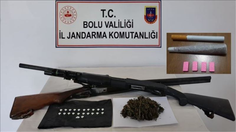 Edinilen bilgiye göre, İl Jandarma Komutanlığı ekipleri, Bolu´nun Mudurnu ilçesine bağlı Taşkesti beldesi ve D-100 Karayolu Bolu Dağı mevkiilerinde uyuşturucu operasyonu düzenledi. Yapılan operasyonlarda gözaltına alınan 9 şahsın ev, araç ve iş yerlerinde yapılan aramalarda 65 gram esrar, 26 adet uyuşturucu hap ile 2 adet ruhsatsız av tüfeği ele geçirildi. İfadeleri alınmak üzere jandarma komutanlığına götürülen şüpheliler, işlemlerinin ardından adliyeye sevk edildi. Şüphelilerden 1´i tutuklanarak cezaevine gönderilirken, 8 kişi şüpheli serbest bırakıldı.