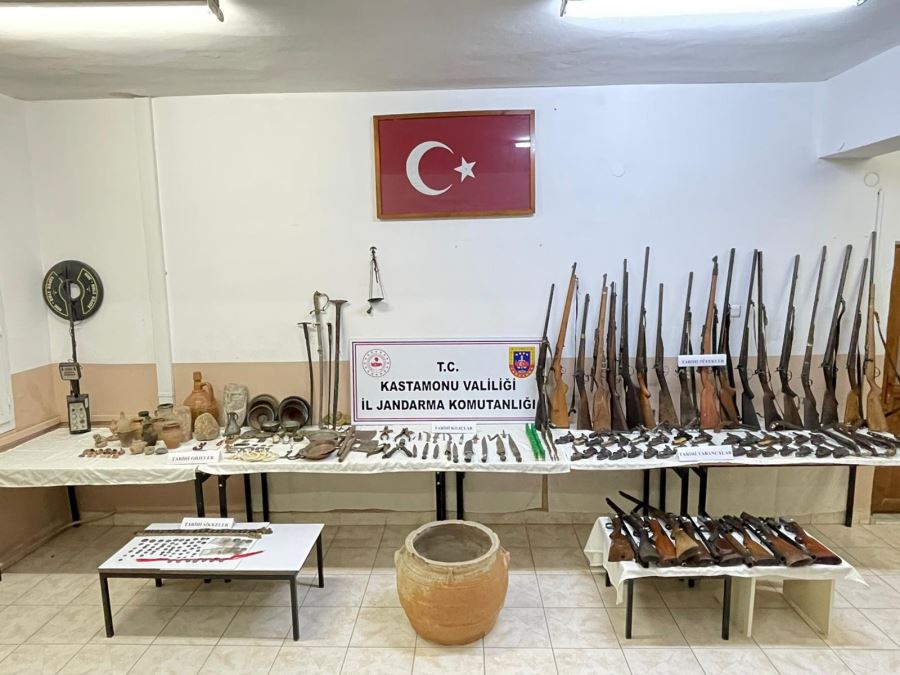 Kastamonu’nun Hanönü ilçesinde jandarma ekipleri tarafından bir eve düzenlenen operasyonda 60 adet silah ve çok sayıda tarihi eserde ele geçirildi. Olayla ilgili şüpheli şahıs, gözaltına alındı.