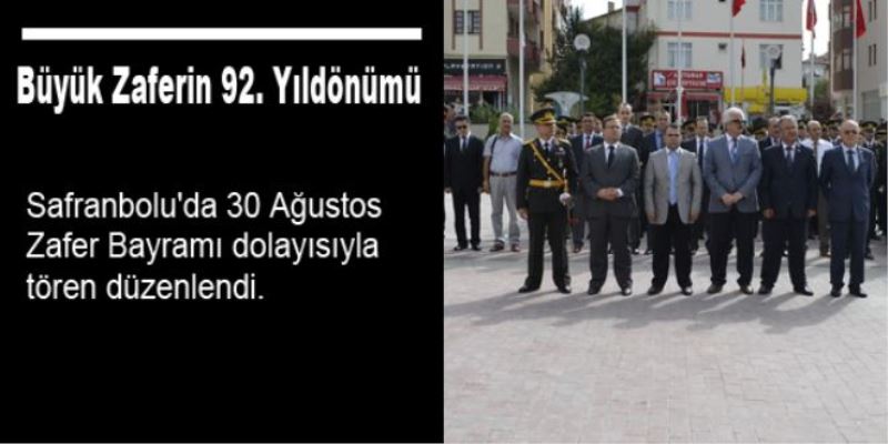 Misak-ı Milli Meydanı`nda düzenlenen törende, Safranbolu Kaymakam Vekili Tolga Özdemir, Garnizon Komutanı Jandarma Albay Cihan Ulukaya ve Safranbolu Belediye Başkanı tarafından Atatürk Anıtı`na çelenk sunuldu. Ardından saygı duruşunda bulunuldu ve İstiklal Marşı okundu. Daha sonra Safranbolu Kaymakam Vekili Tolga Özdemir, Garnizon Komutanı Jandarma Albay Cihan Ulukaya ve Safranbolu Belediye Başkanı Necdet Aksoy, vatandaşların ve protokolün bayramını kutladı.